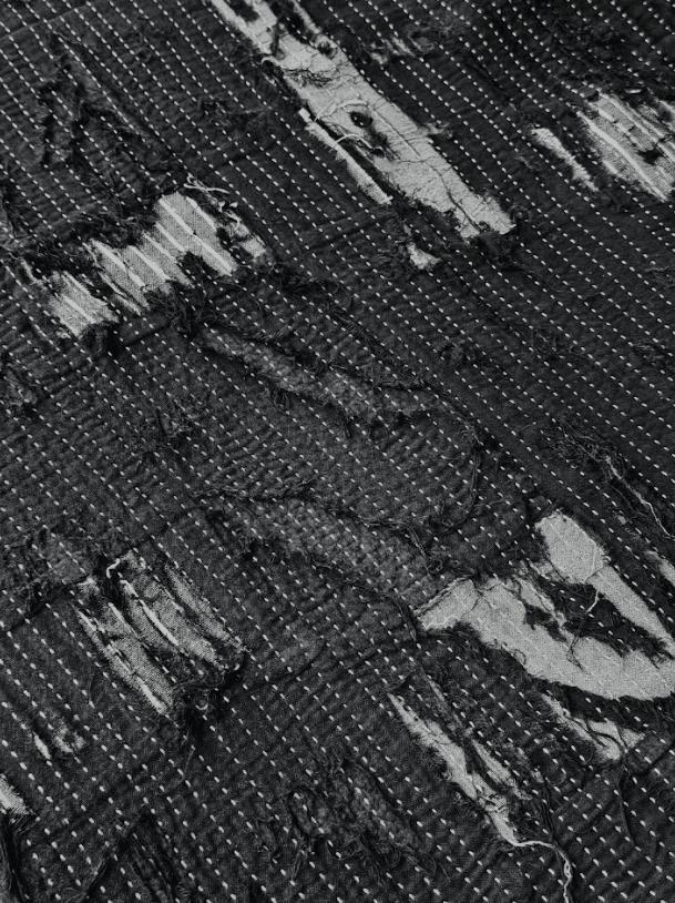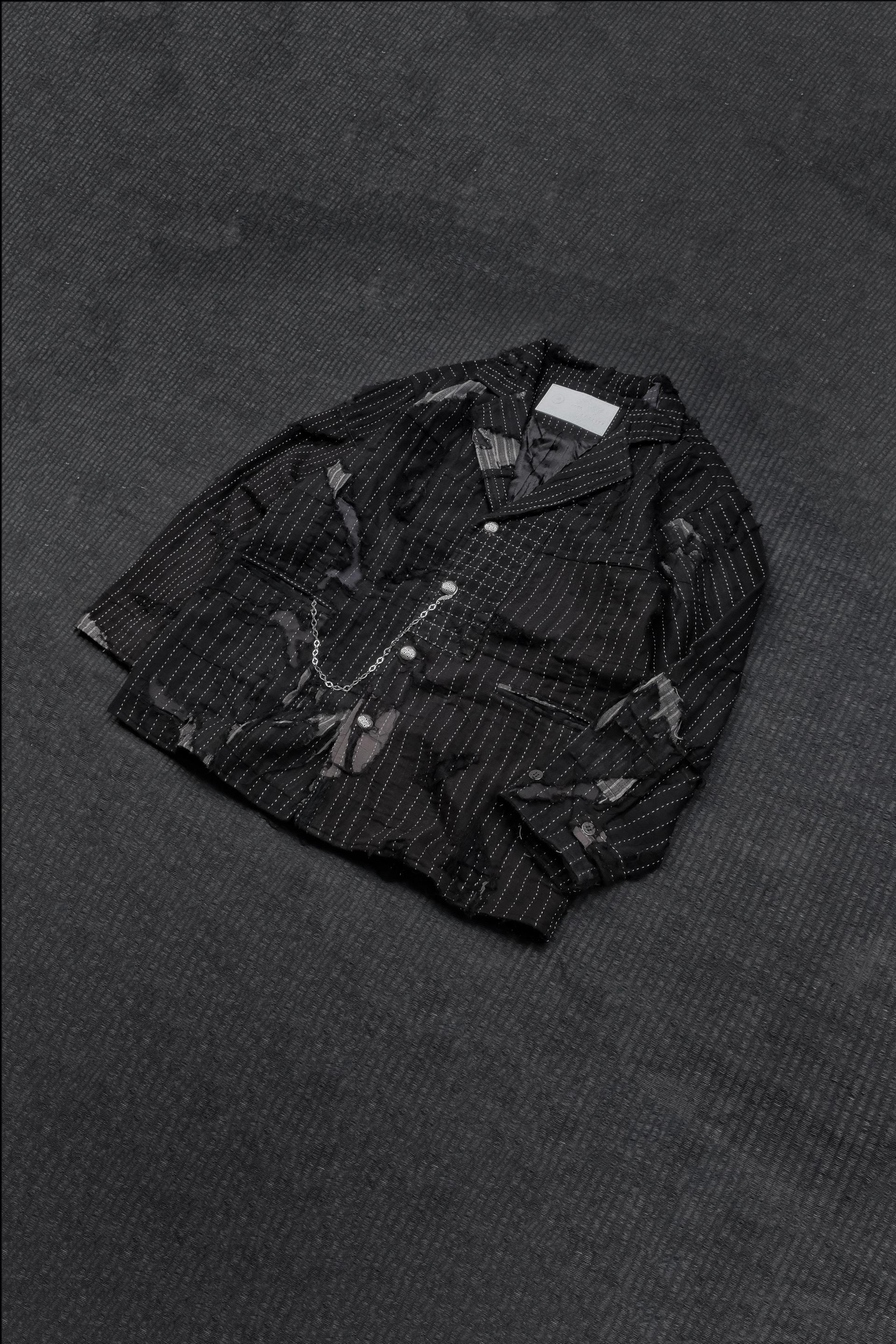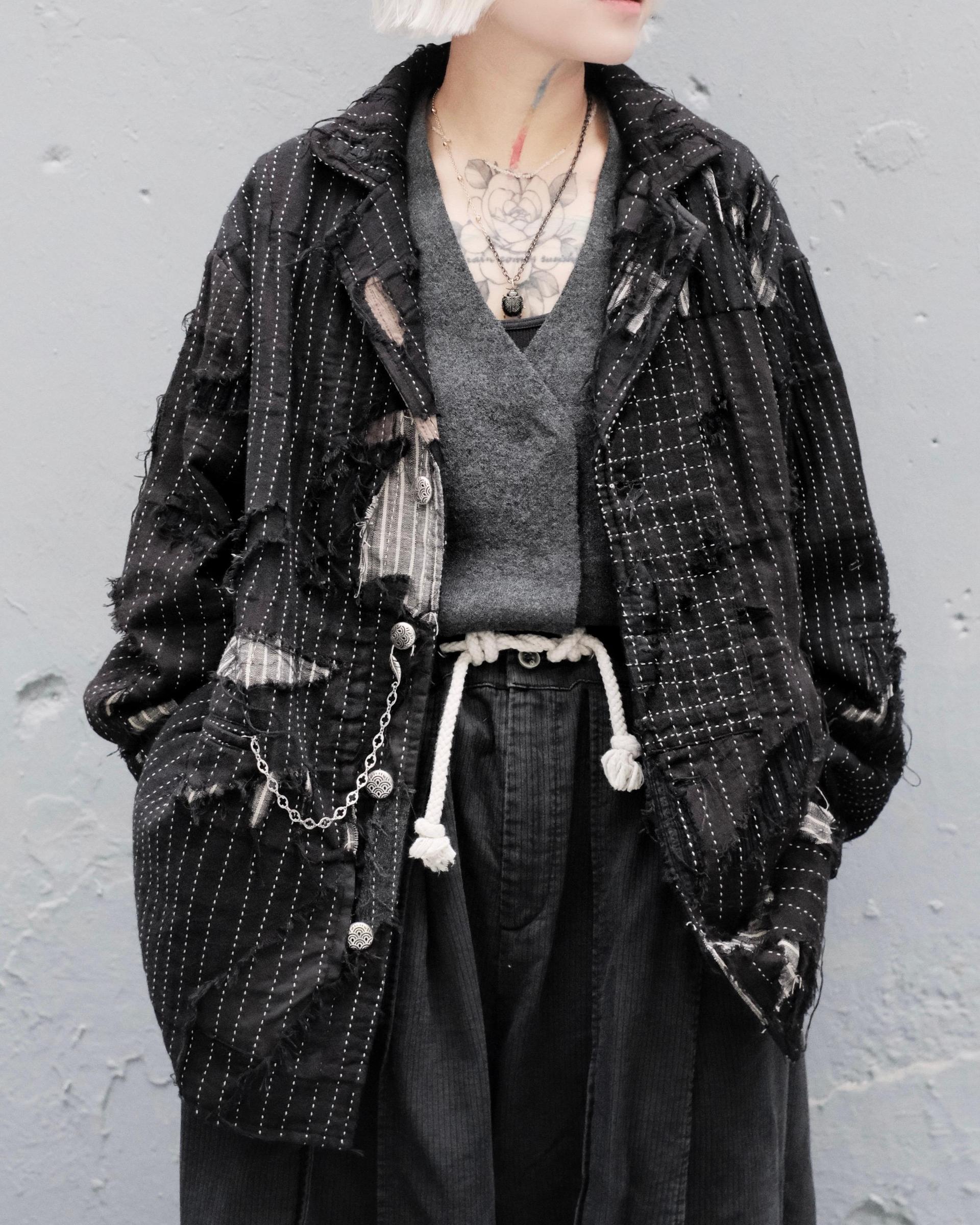 * 結構重組:在西裝的優雅輪廓中,植入 DARK BORO 的破壞與重組,單件超過100塊拼貼,呈現一種混亂中帶有序的獨特張力。